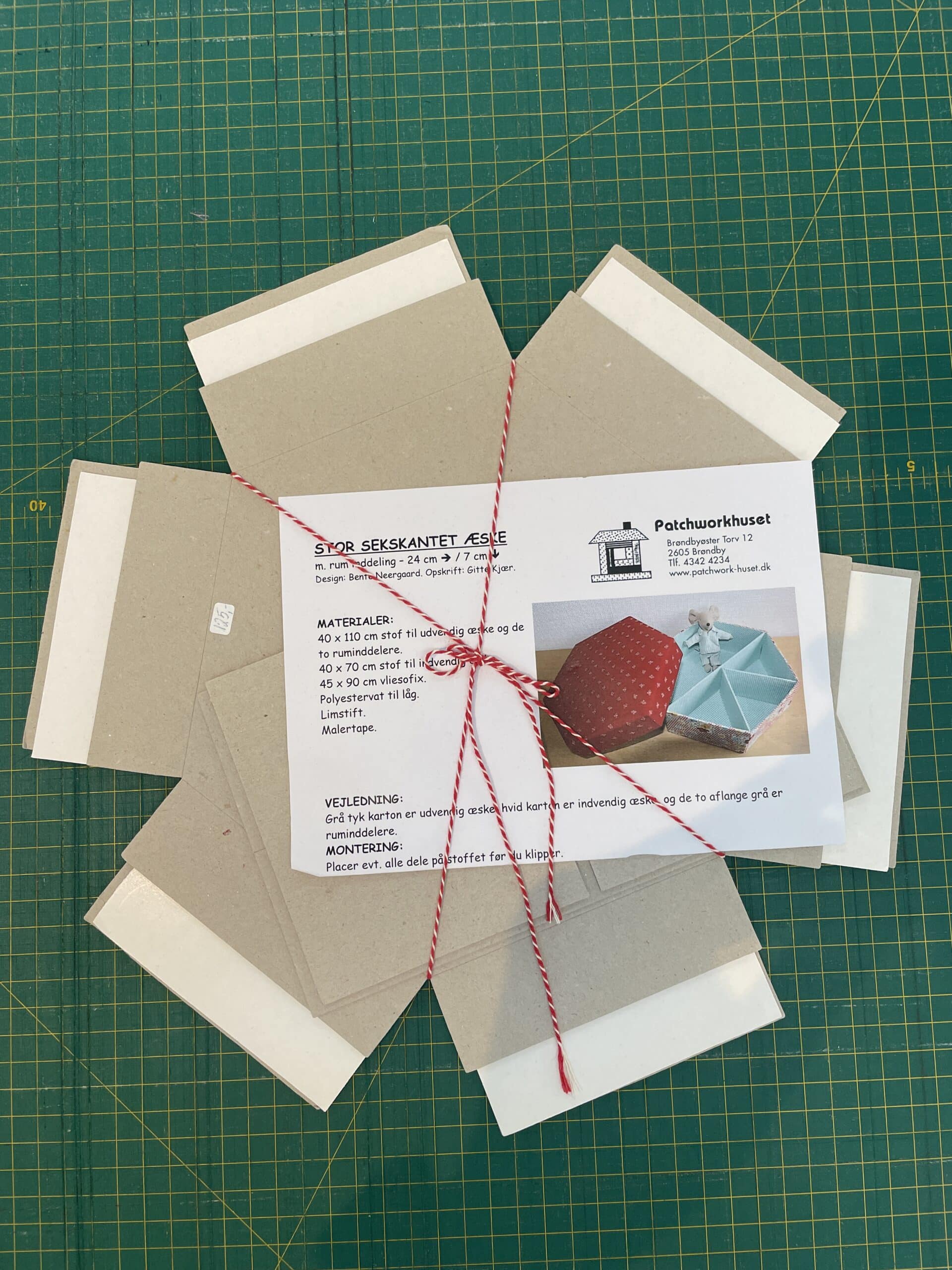 Stor sekskantet æske med ruminddeling fra Patchworkhuset – 24 cm bred – 7 cm høj