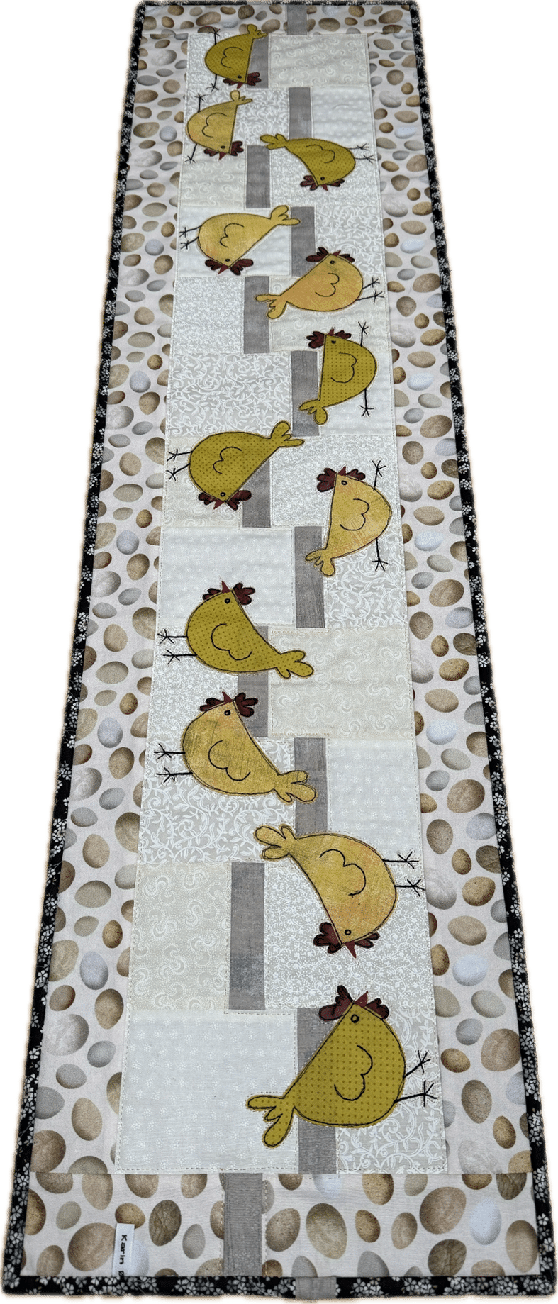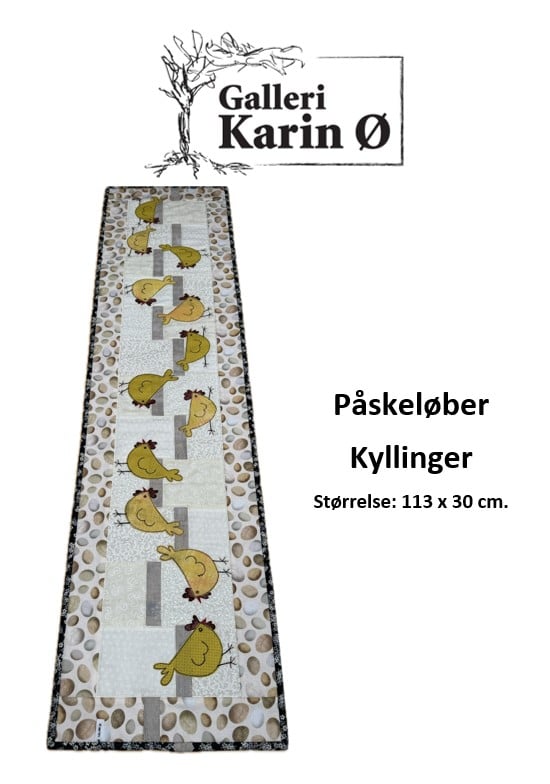 Mønsteret er designet med fokus på både traditionelt patchwork og fine detaljer, der fremhæver de små kyllinger og giver løberen et livligt og forårsfriskt udtryk. Kombinationen af stofstykker, farver og applikation giver et smukt resultat, som vil pynte år efter år.