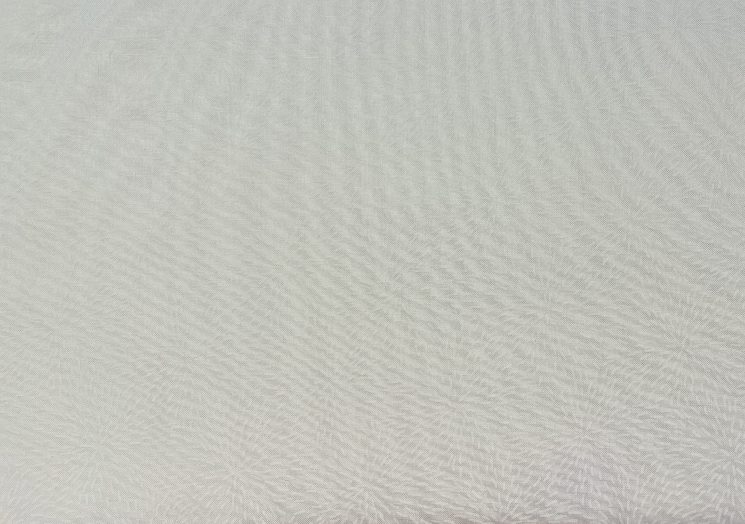Dette fine patchworkstof i 100% bomuld har en smuk knækket hvid bund, der giver et lyst og roligt udtryk. Mønstret består af små, fine streger, som stråler ud fra midten og danner dekorative rosetter med en diameter på ca. 5 cm. Det giver stoffet et elegant og næsten grafisk udtryk, samtidig med at det bevarer en let og luftig fornemmelse.