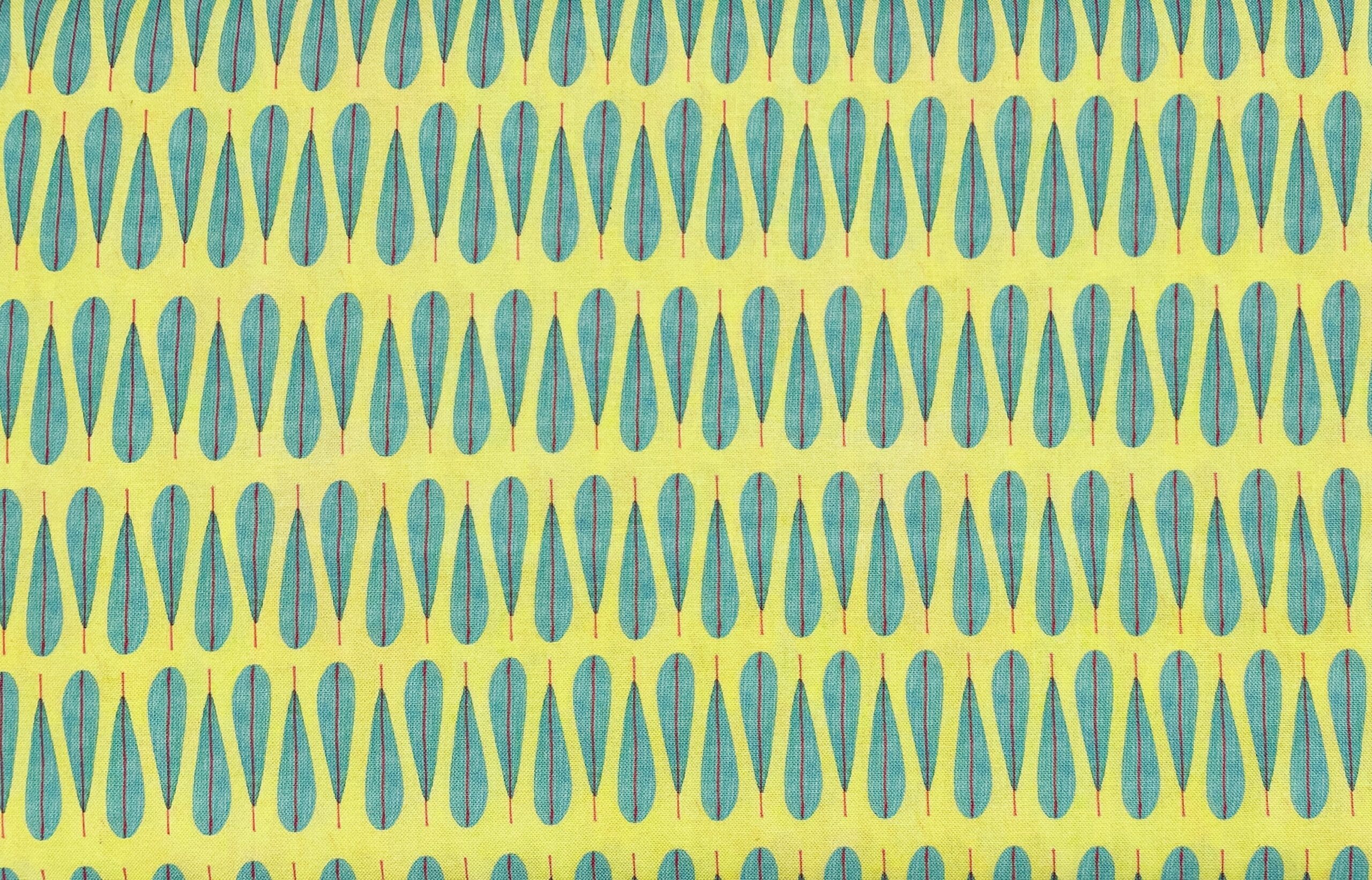 100% bomuldsstof – Lys gul med skønne fjer/blade – Stella Aurora