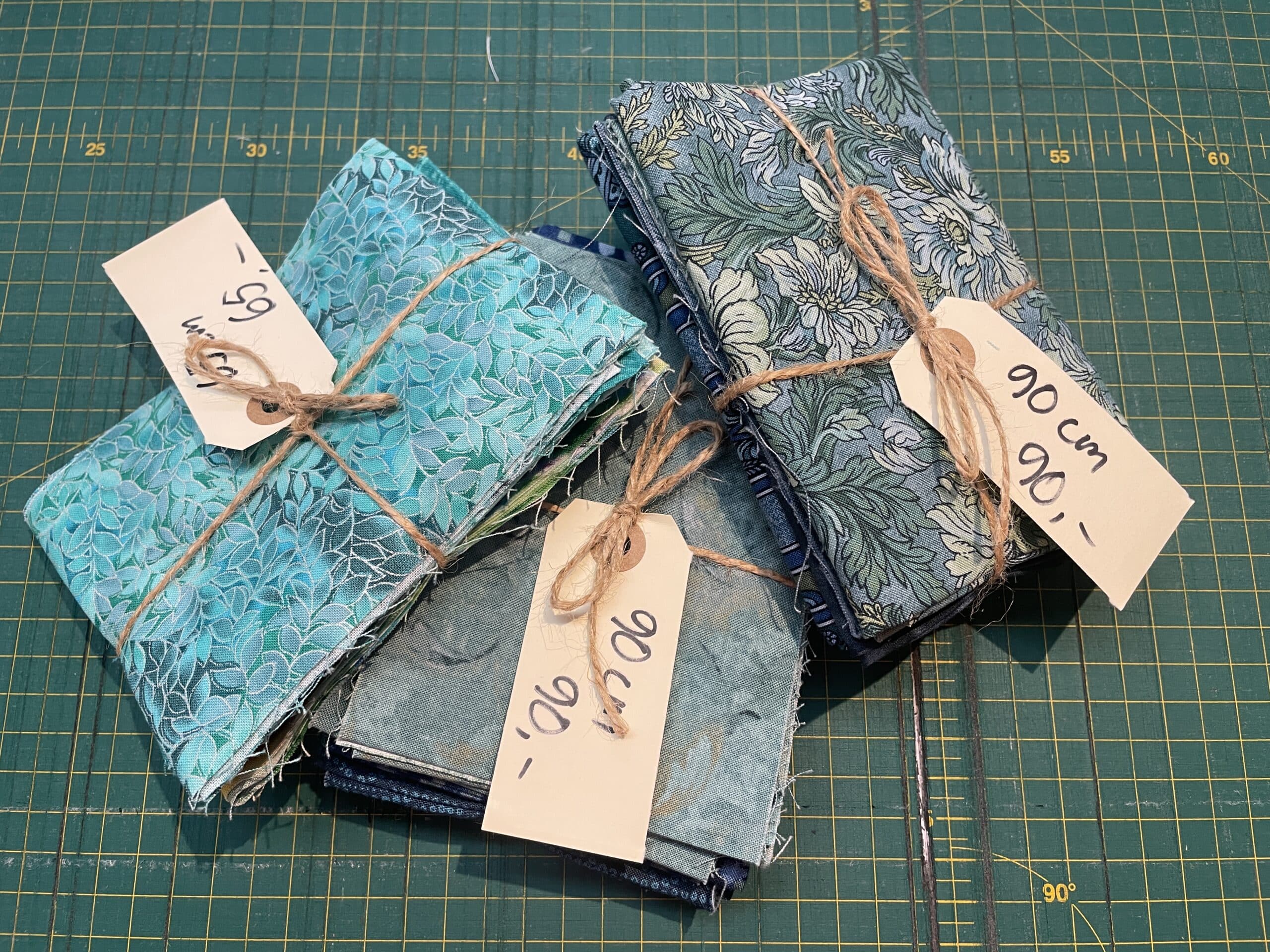 Hver lykkepakke er unik og sammensættes tilfældigt, men altid i en smuk farveskala af grønne nuancer. Perfekt, hvis du ønsker inspiration fra naturen – eller mangler grønne stoffer, der passer godt sammen.