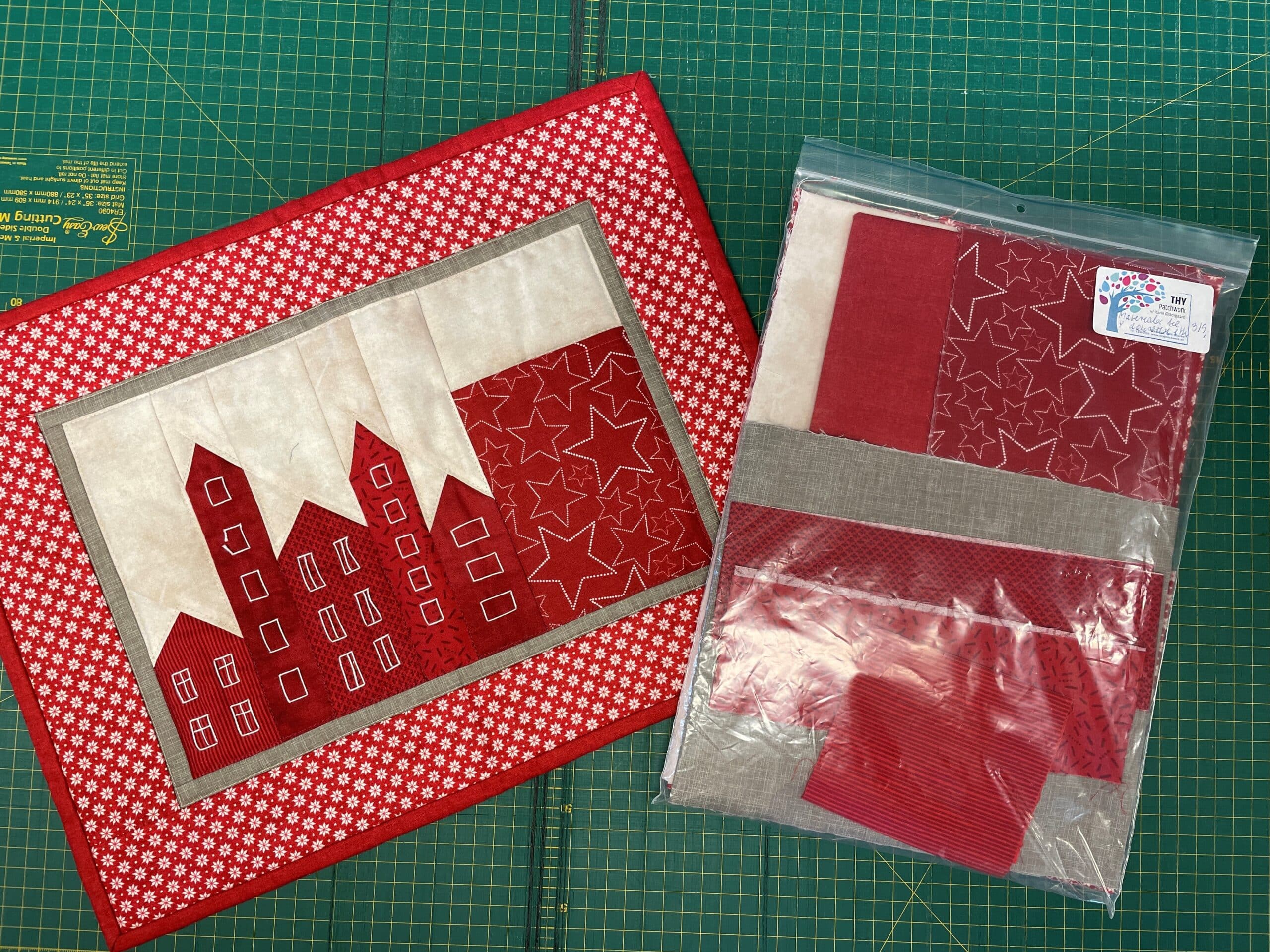 Dette kit indeholder stof og mønster til 4 dækkeservietter.