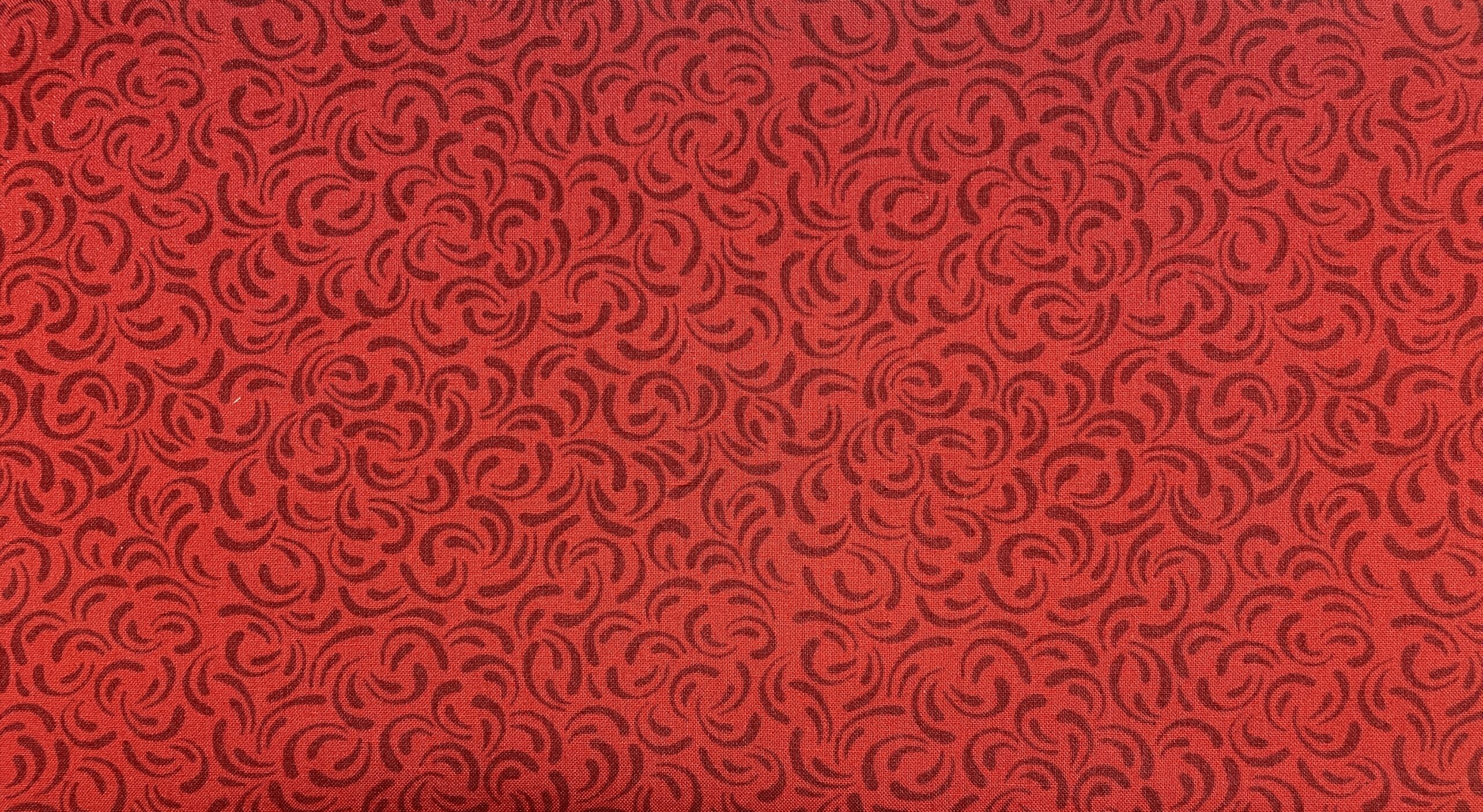 Skab varme, liv og et strejf af kunstnerisk flair i dine næste kreationer med dybrød bomuldsstof med cirkel-penselstreg mønster.