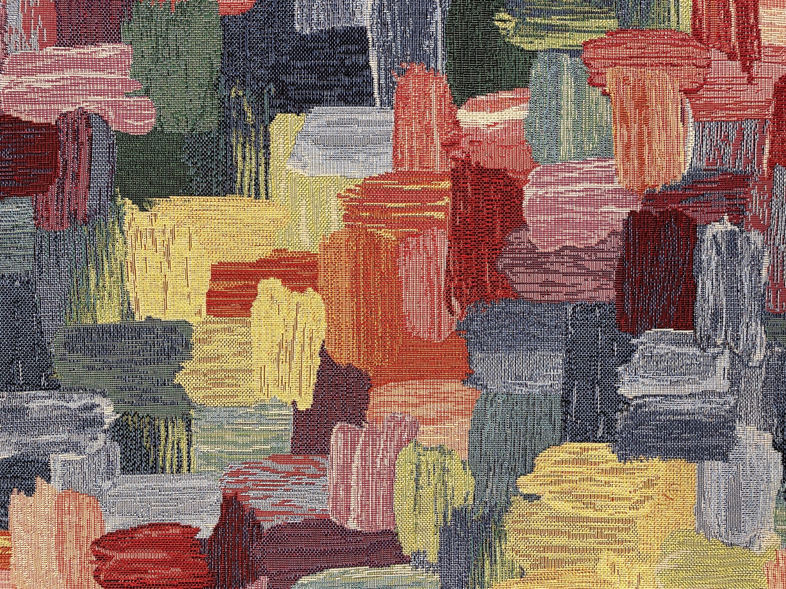 Dette gobelin stof er fremstillet i en kraftig og slidstærk kvalitet, der giver både holdbarhed og et smukt, eksklusivt udtryk. Med en bredde på 140 cm og et abstrakt mønster i levende detaljer, får du et stof, der både er funktionelt og dekorativt – ideelt til dig, der ønsker at skabe noget unikt.