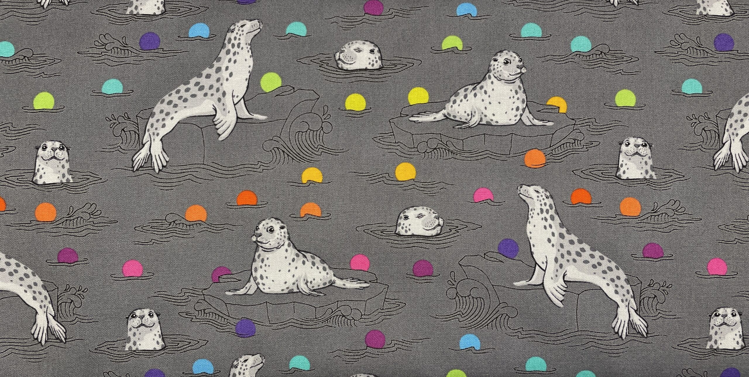 Stoffet er 100% bomuld i høj kvalitet – blødt, stabilt og let at arbejde med. Det er perfekt til patchwork, quilt, puder, tasker, små tasker, tæpper eller andre kreative syprojekter, hvor et sødt og legende motiv ønskes. De multifarvede prikker giver et frisk og livligt element, der kombinerer harmonisk med den grå baggrund og de fine sæler.