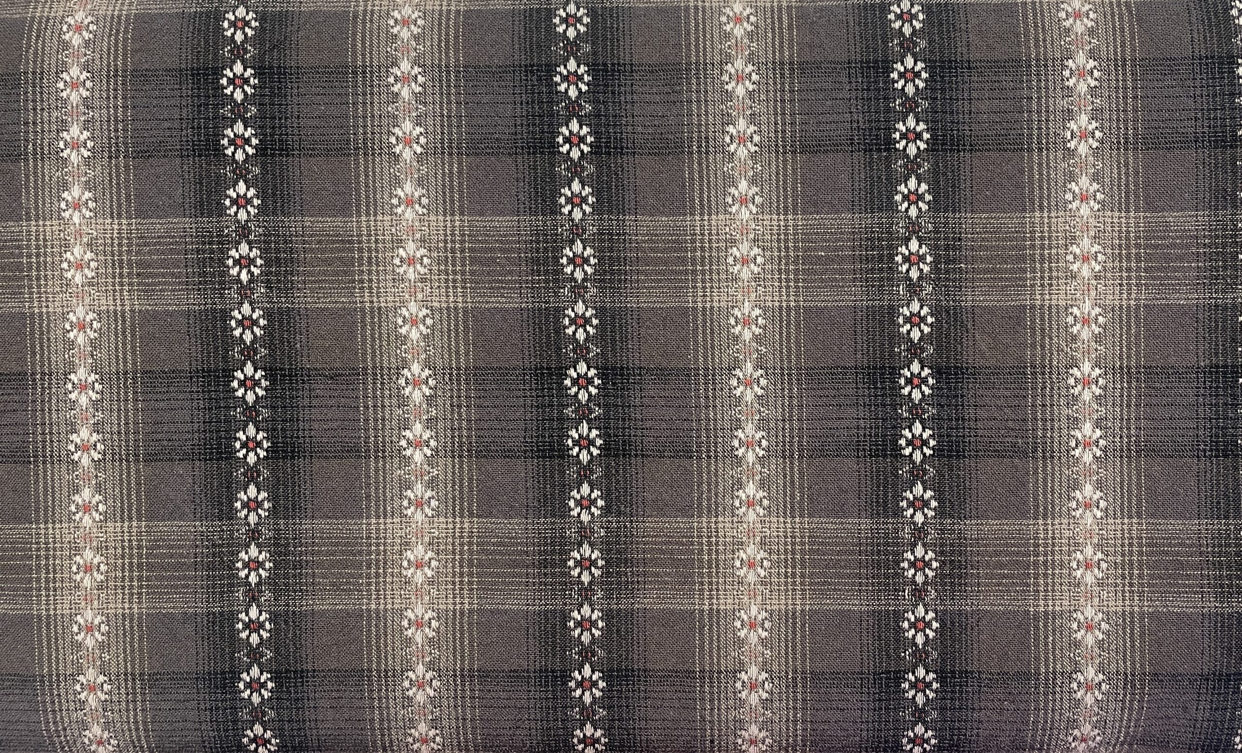 Forkæl dine kreative projekter med denne elegante Japanske Tochio yarn dyed-bomuld, hvor brunsorte tern møder fine lyse blomsterranker i et smukt og harmonisk mønster. Stoffet er vævet i Japan med yarn dyed-teknik – hvor trådene farves, før de væves – hvilket giver dybde, holdbarhed og en lækker tekstur, du både kan se og mærke.