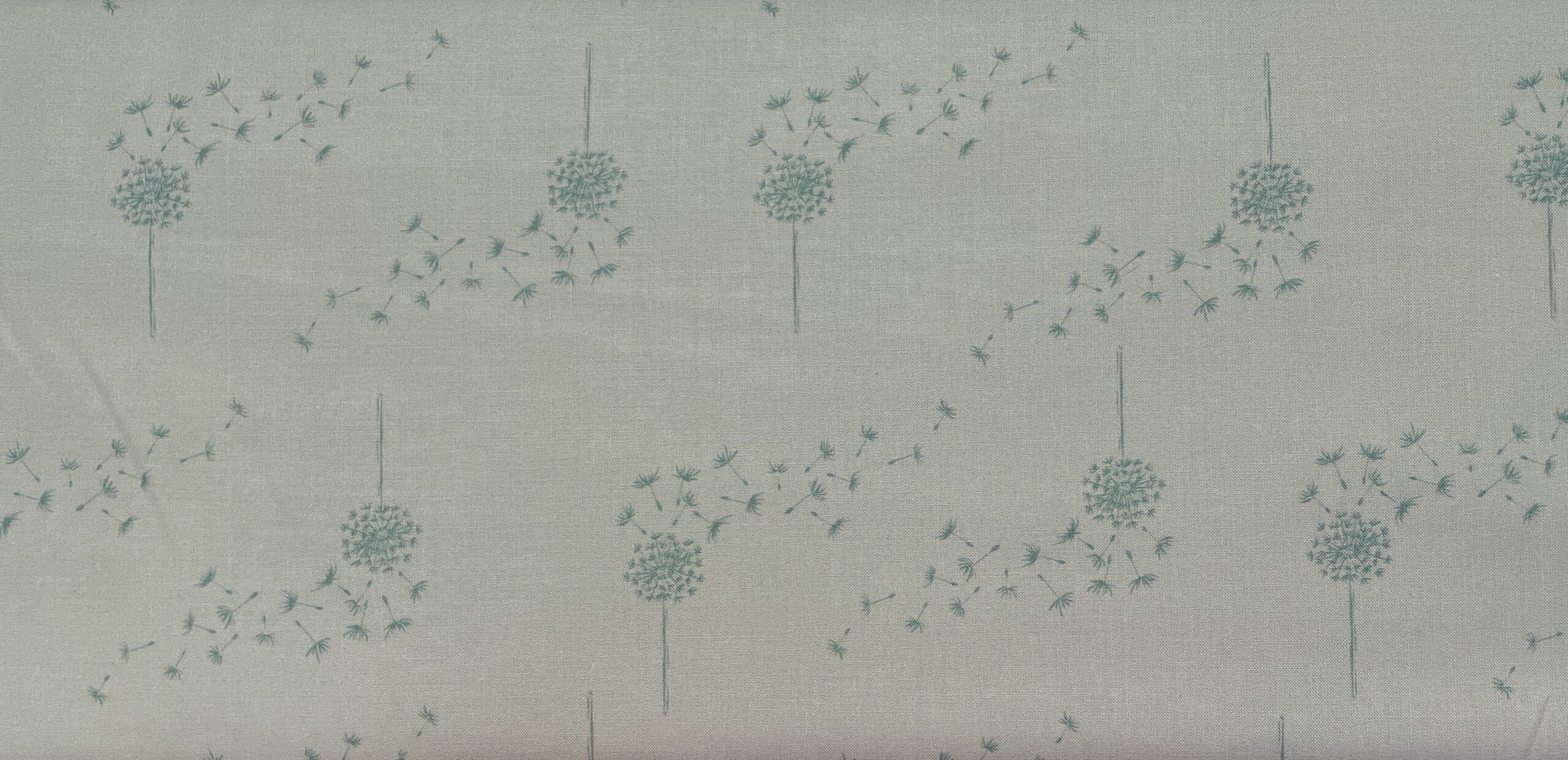 100% Bomuldsstof – Lys Grå med Lys Petrol Mælkebøtte