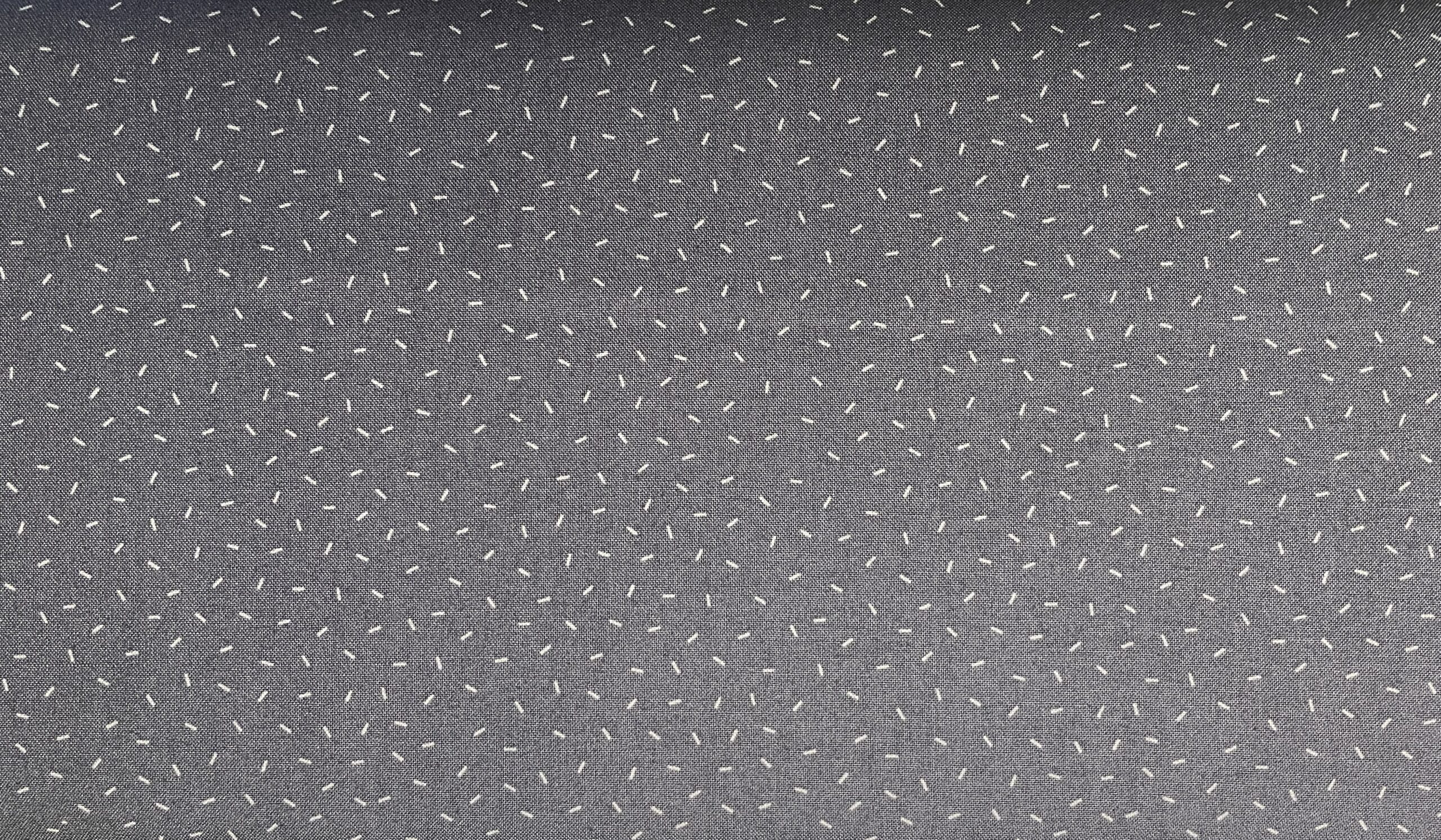 Et elegant og alsidigt patchworkstof i en smuk mørk grå nuance, brudt af fine, lyse nister, der giver overfladen et let, tekstureret udtryk. Stoffet har en rolig og sofistikeret fremtoning, der gør det særligt velegnet som baggrunds- eller kontraststof i patchworkprojekter, hvor du ønsker at fremhæve mønstre eller farver på en diskret måde.