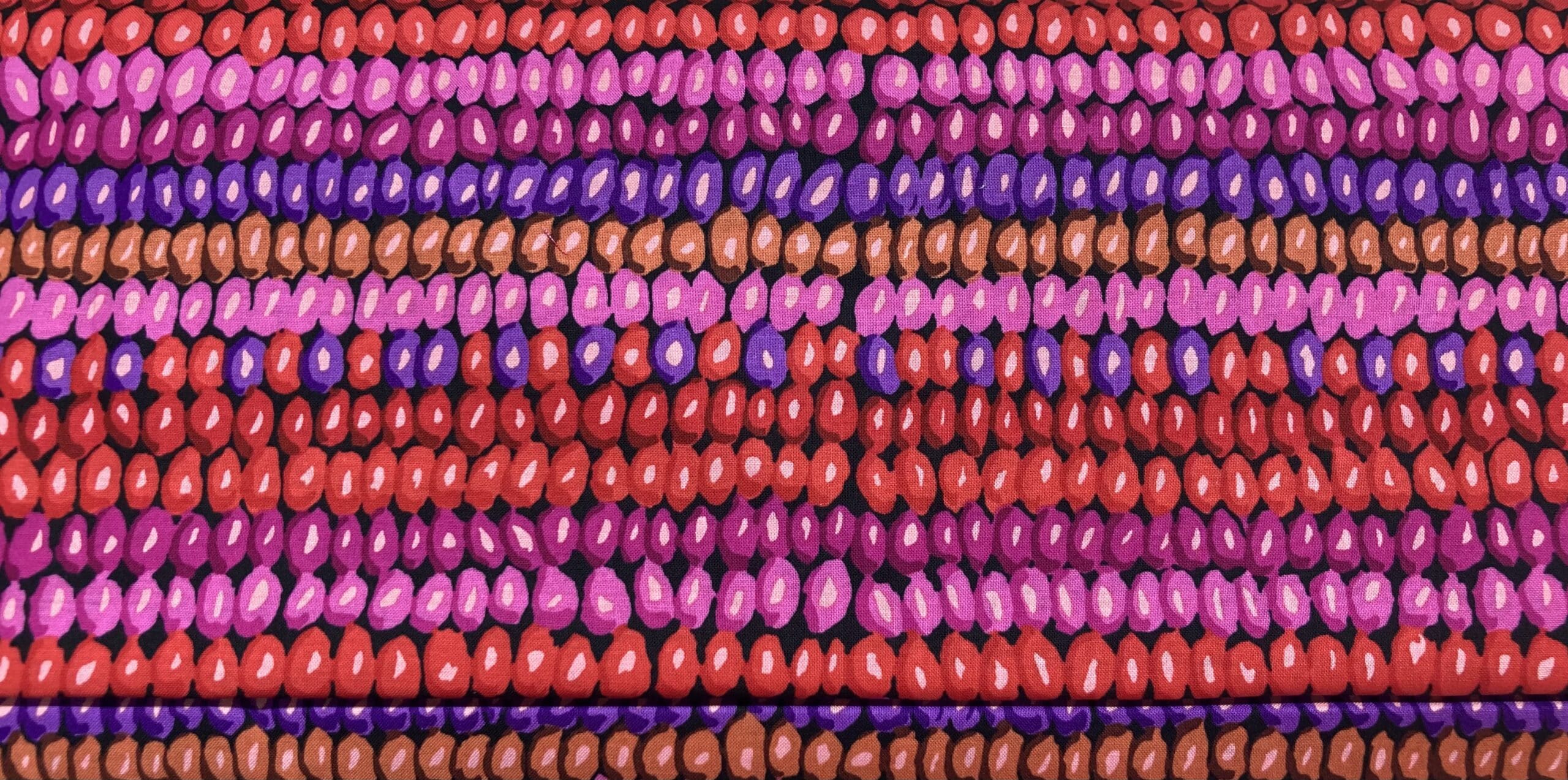 Vintage kerner – Kaffe Fassett er et eksklusivt patchworkstof, designet af den anerkendte tekstildesigner Kaffe Fassett, der er kendt for sine kunstneriske og farverige mønstre. Dette stof har et unikt vintage-inspireret design, hvor kerner i forskellige nuancer skaber et flot, retropræget udtryk. Den harmoniske sammensætning af farver og former giver stoffet en livlig, men samtidig klassisk æstetik, perfekt til kreative projekter.